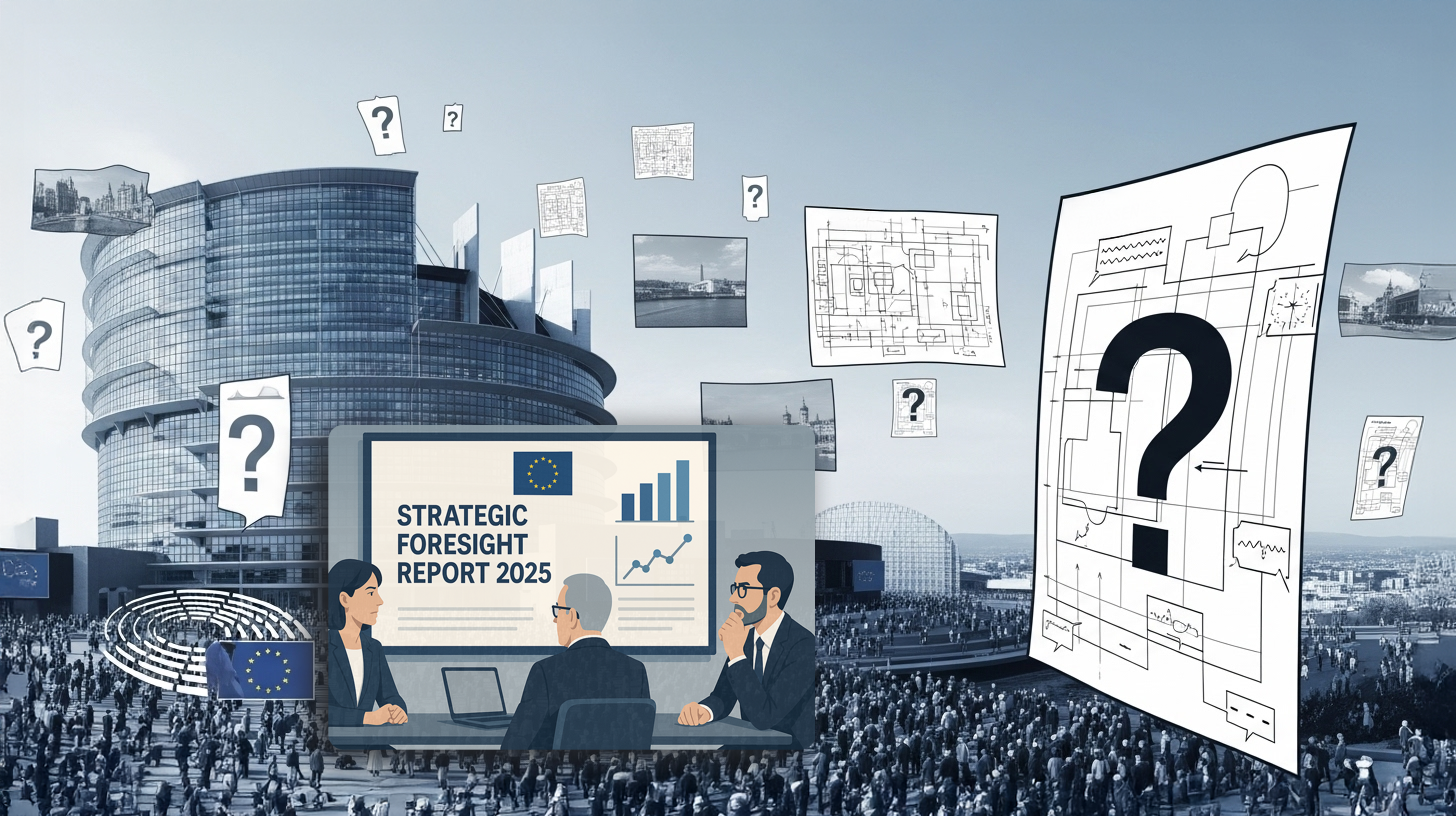 يُحدد تقرير الاستشراف الاستراتيجي لعام 2025 ثمانية مجالات عمل على جدول الأعمال لتعزيز قدرة الاتحاد الأوروبي على الصمود في مواجهة المخاطر الجيوسياسية والاقتصادية والمجتمعية. يغطي التقرير مجالات رئيسية - من الرؤية العالمية إلى الأمن والتكنولوجيا والمرونة الاقتصادية، بالإضافة إلى التعليم والديمقراطية والمساواة بين الأجيال - وبالتالي يعكس إرشادات رئيسة المفوضية فون دير لاين والأجندة الاستراتيجية للمجلس. ومع ذلك، والأهم من ذلك، أن التقرير غالبًا ما يبدو أشبه بأجندة سياسية: إذ تفتقر إلى روابط ملموسة بين التحديات المحددة والتدابير المقترحة، وتظل مسارات التنفيذ غامضة، ونادرًا ما تُقدم ابتكارات حقيقية. ويظل التناقض بين الأهداف الطموحة (مثل معايير الذكاء الاصطناعي العالمية أو إصلاح منظمة التجارة العالمية) والقدرة العملية للاتحاد الأوروبي على العمل واضحًا. ويشكل التقرير تحديًا للبرلمانات: إذ يصعب معالجة القضايا متعددة القطاعات ضمن هياكل اللجان التقليدية، ولهذا السبب تُناقش نماذج مختلفة للاستشراف البرلماني - من اللجان المتخصصة إلى أمناء المظالم الأفراد إلى دمج الاستشراف في العمليات التشريعية.