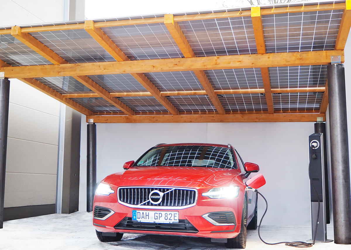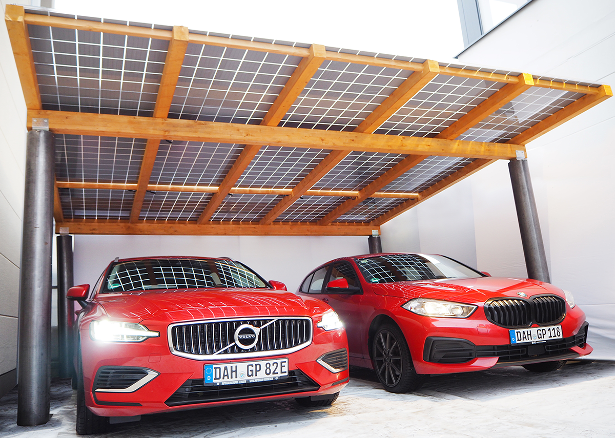 Daylighting/Tageslichtsysteme: Mit Xpert.Solar Ihre individuelle Solarcarport-Beratung – Die Kombination aus Holz-Unterkonstruktion, Stahlsäulen und semi-transparenten Solarmodulen