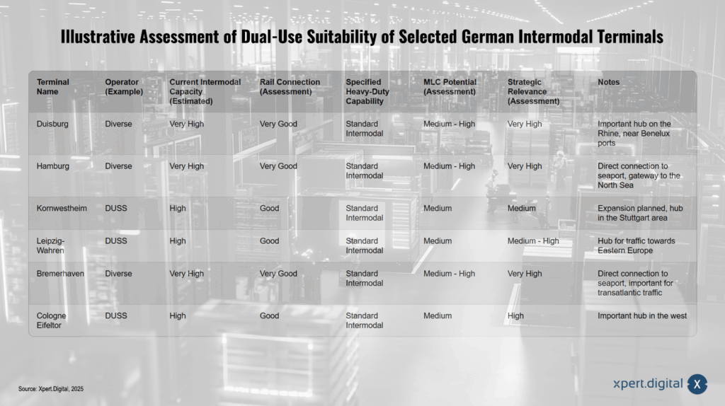 Illustrative Bewertung der Dual-Use-Eignung ausgewählter deutscher KV-Terminals – Bild: Xpert.Digital