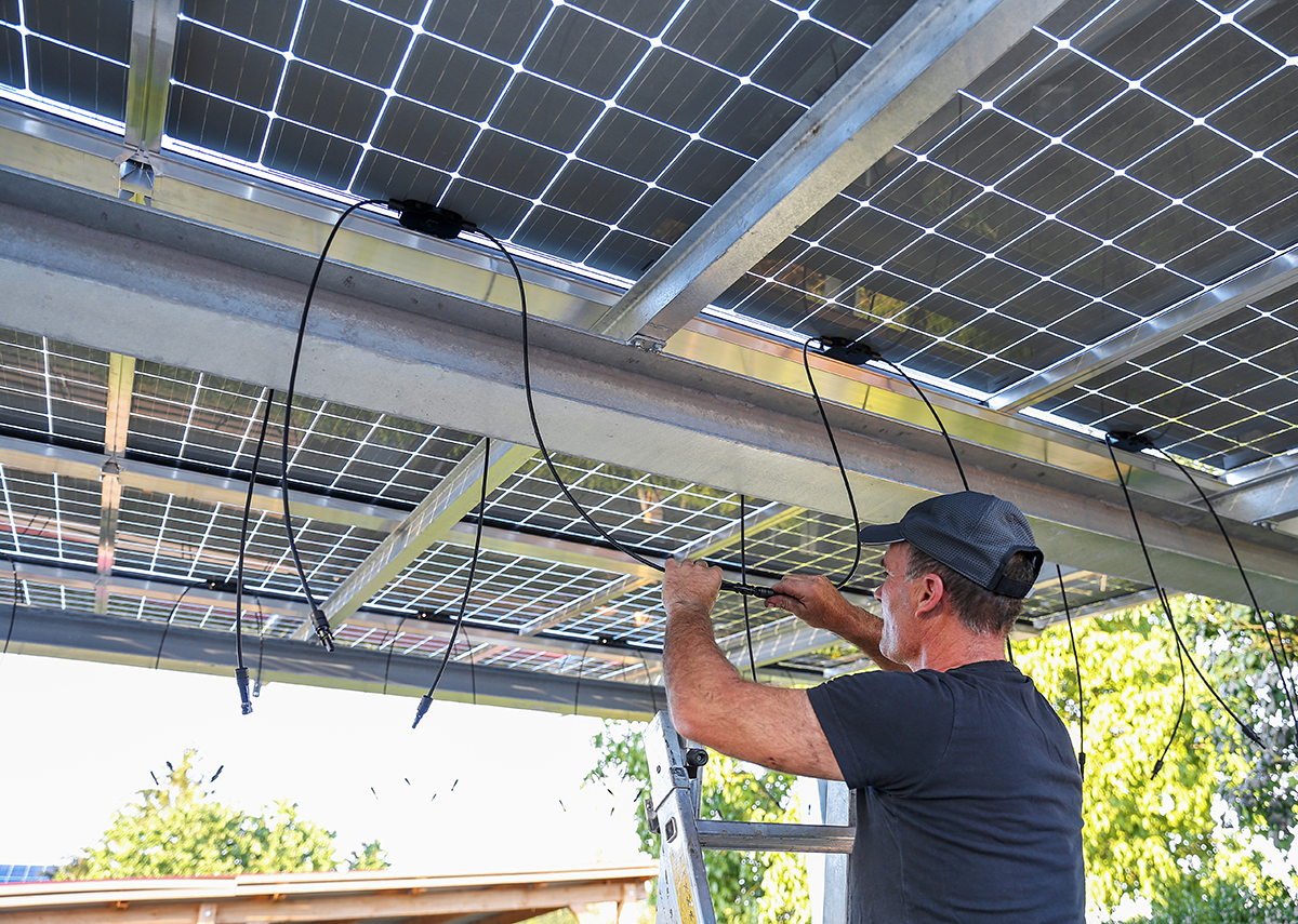 - Glas-Glas Solarmodule Überkopfinstallation – Bild Marina Lohrbach|Shutterstock.com