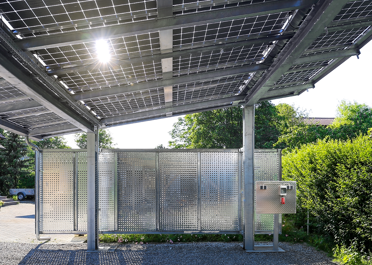 - Solarcarport Ladestration mit Solarmodule Überkopfmontage – Bild Marina Lohrbach|Shutterstock.com