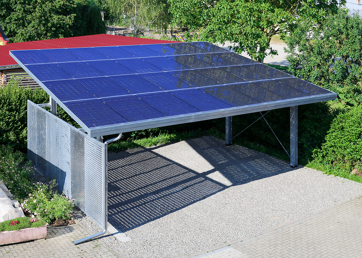 - Solarcarport mit Üerkopfzulassung für Glasmodule – Bild Marina Lohrbach|Shutterstock.com