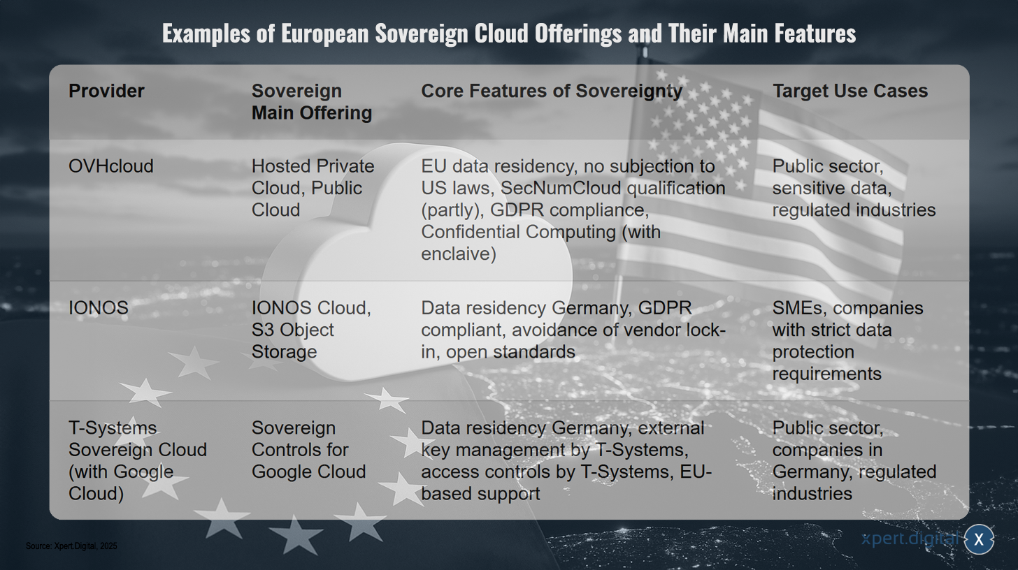 Beispiele für europäische souveräne Cloud-Angebote und ihre Hauptmerkmale